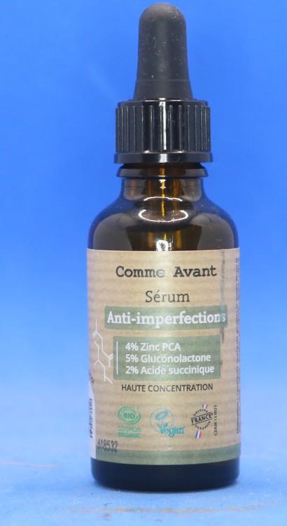 Le sérum anti-imperfections de chez « Comme Avant » permet d’atténuer les taches et les boutons. Composé de 6 ingrédients seulement et riche de 3 actifs, qui réduisent significativement les imperfections en quelque semaines, il contient du jus d’aloé vera frais, favorisant la cicatrisation grâce à ses vêtus hydratantes.