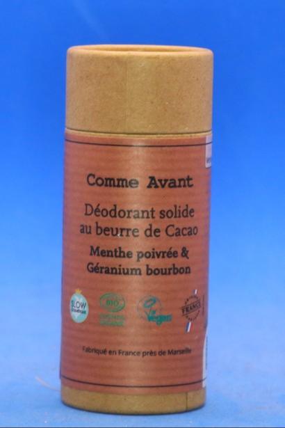 Les déodorants solides de chez « Comme Avant » sont efficaces et doux pour la peau. Ils régulent la transpiration sans la bloquer et luttent contre les mauvaises odeursDisponible en stick 60g et en magasin.