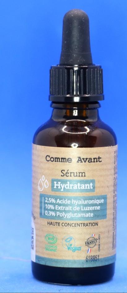 Le sérum hydratant de chez « Comme Avant » contient 3 actifs hautement dosés pour hydrater, il contient du jus d’aloé véra frais, apportant des vertus hydratantes, réparatrices et apaisantes.