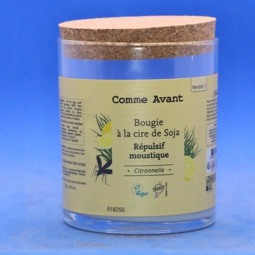 La bougie à la cire de soja répulsif moustique de chez « Comme Avant » repousse et éloigne efficacement les moustiques.